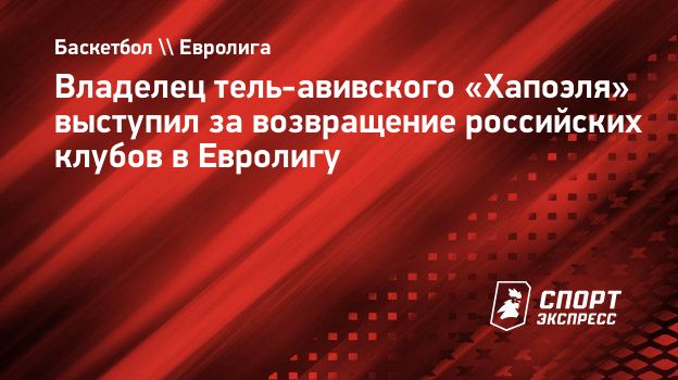 Владелец тель-авивского «Хапоэля» выступил за возвращение российских клубов в Евролигу
