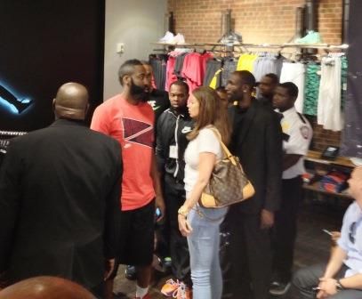 Помимо тренировок были и выходные дни. В один из таких дней я, Александр Печерский и Мгер Петросян пошли в Nike за кроссовками. Баскетбольный магазин находился на самом верху пятиэтажного здания, а нужная пара на специальном лифте доставлялась за считанные минуты. Помимо огромного выбора кроссовок мы встретили еще и … форварда Хьюстона Джеймса Хардена! К его приходу администрация Nike подготовилась основательно: играл ди-джей, собралась куча народа.