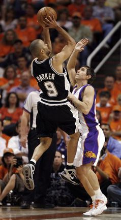 С: Т. Паркер (41+12 передач), Данкан (23+10 подборов), Жинобили (20).