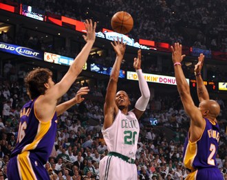 В третьей четверти Пирс после столкновения с одноклубником Кендриком Перкинсом отправился в раздевалку, откуда вернулся лишь к середине четвертого периода с перемотанным коленом. До вынужденного перерыва на счету тяжелого форварда хозяев было 11 очков, столько же он набрал за оставшиеся 5 минут встречи, с ходу забросив два 3-очковых и выведя "Бостон" вперед - 75:71. Далее команды обменялись удачными атаками, причем со стороны "Лейкерс" в них почти не участвовал Коби Брайант. Лидер калифорнийцев сосредоточился на обороне, да к тому же в нападении выглядел не слишком удачно - лишь 9 реализованных бросков с игры из 26. |