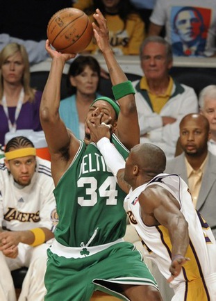 На последней игре "Лейкерс" на своей площадке в нынешнем чемпионате трибуны Staples Center окрасились в белый цвет - по воскресеньям традиционная канареечная домашняя форма калифорнийцев сменяется "парадной" белоснежной. Правда, на сей раз вместо праздника в Лос-Анджелесе мог наступить траур: для завоевания титула "Бостону" оставалось одержать всего одну победу, а игроки "Селтикс" вовсе не горели желанием возвращаться домой без чемпионского кубка. |