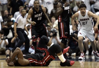 "Атланте" осталось одержать всего одну победу, чтобы впервые за 10 лет выйти в 1/4 финала. Лучший снайпер регулярного чемпионата защитник "Майами" Дуэйн Уэйд в одном из игровых эпизодов в первой половине упал на паркет, ударившись головой, и пролежал на нем несколько минут. После этого лидер гостей ушел на некоторое время в раздевалку для получения медпомощи и ничем не смог помочь своей команде, когда "Хокс" совершали решающее ускорение. Хозяева во второй четверти реализовали 13 бросков с игры из 16, что позволило им повести к большому перерыву со счетом 63:40.