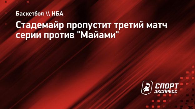 Стадемайр пропустит третий матч серии против "Майами"