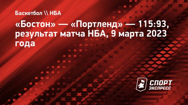 «Бостон» победил «Портленд» в матче регулярного чемпионата НБА против «Портленда» — 115:93. «Селтикс» прервали свою трехматчевую серию поражений.