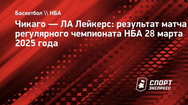 «Чикаго» на своем паркете переиграл «Лейкерс» в матче регулярного чемпионата НБА — 119:117. Форвард гостей Леброн Джеймс оформил дабл-дабл — 17 очков и 12 передач.