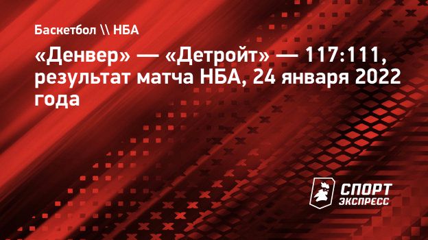 «Денвер» победил «Детройт» в матче регулярного чемпионата НБА. Встреча завершилась со счетом 117:111.