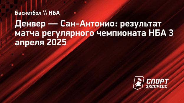 «Денвер» занимает четвертое место в Западной конференции НБА. «Сан-Антонио» прервал серию из пяти поражений подряд и идет 13-м на «Западе».