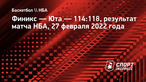 «Финикс» в матче регулярного чемпионата НБА уступил «Юте» со счетом 114:118.