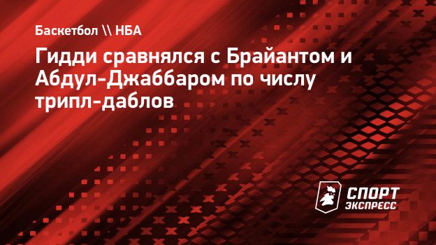 Гидди сравнялся с Брайантом и Абдул-Джаббаром по числу трипл-даблов