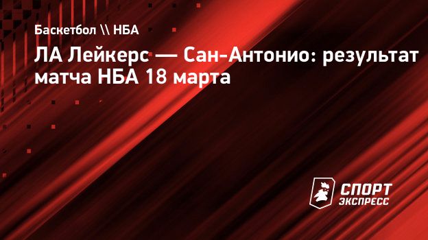 «Лейкерс» одержали 42-ю победу и занимают 4-е место в Западной конференции, «Сан-Антонио» потерпел 39-е поражение и идет на 13-й строчке.