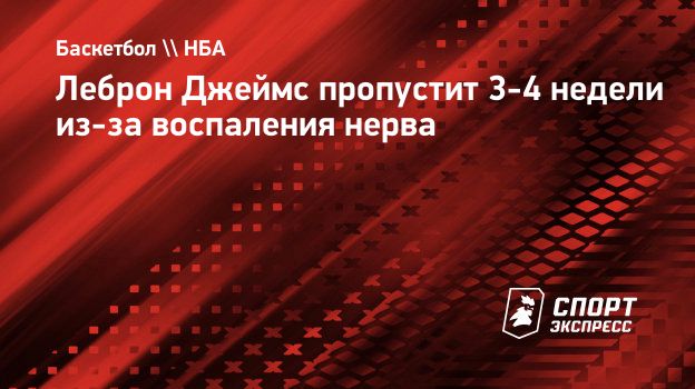Леброн Джеймс пропустит 3-4 недели из-за воспаления нерва