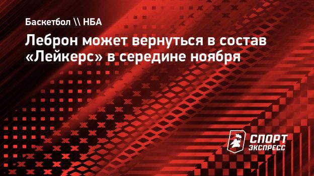 Четырехкратный чемпион НБА и форвард «Лос-Анджелес Лейкерс» Леброн Джеймс может вернуться на площадку в середине ноября, сообщил журналист ESPN Шэмс Чарания.