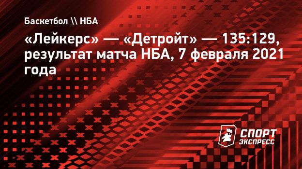 «Лейкерс» в матче регулярного чемпионата НБА во втором овертайме обыграл «Детройт» со счетом 135:129.