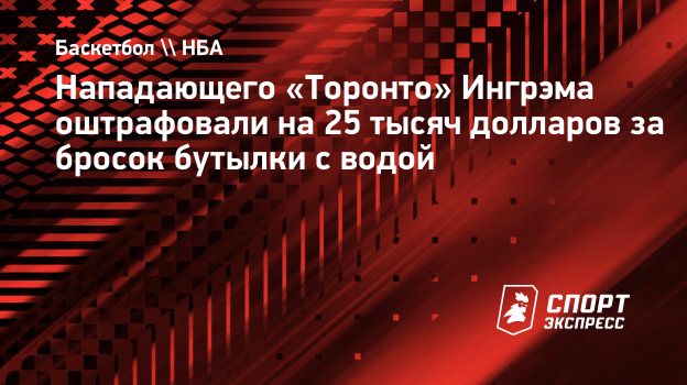 НБА оштрафовала нападающего «Торонто» Брэндона Ингрэма на 25 тысяч долларов США за то, что он с силой швырнул бутылку с водой на пол, находясь на скамейке запасных во время матча регулярного чемпионата против «Филадельфии» (120:130).