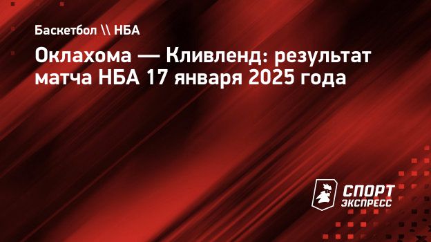 «Оклахома» выиграла у «Кливленда» в матче регулярного чемпионата НБА — 134:114. Разыгрывающий защитник «Тандер» Шэй Гилджес-Александер набрал 40 очков.