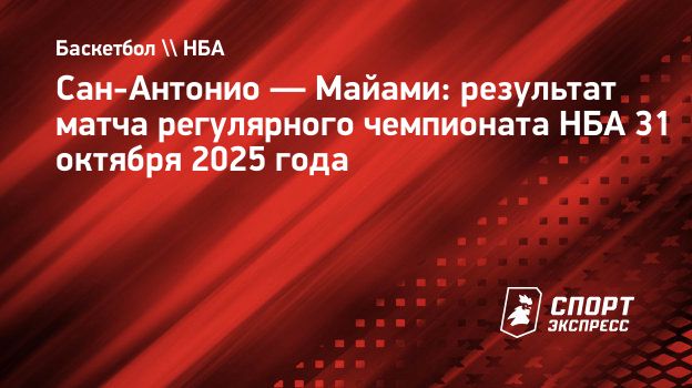 «Сан-Антонио» с 5 победами в 5 матчах лидирует в Западной конференции. «Майами» идет на 4-й строчке в Восточной конференции — 3-2.