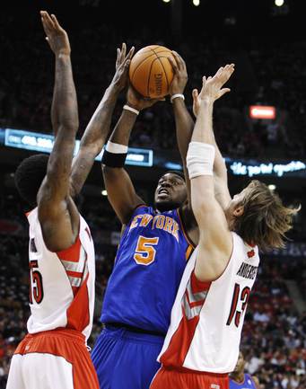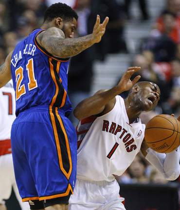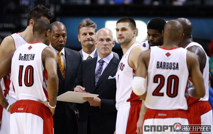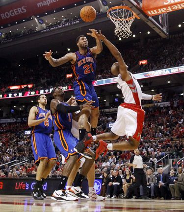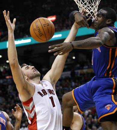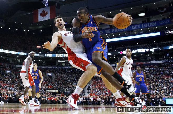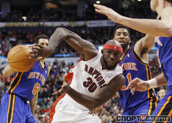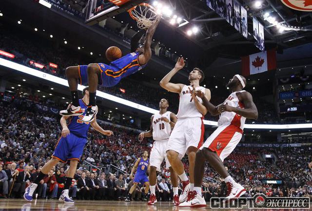 НБА. Регулярный чемпионат. "Торонто" - "Нью-Йорк" - 93:98 (22:29, 25:22, 25:23, 21:24). Т: Барньяни (22), Джек (16), Клейза (13), Барбоза (13), Дерозан (9), Р. Эванс (0 + 16 подборов).Н: У. Чендлер (22 + 8 подборов), Стадамайр (19 + 10 подборов + 9 потерь), Фелтон (15), Галлинари (12), Филдс (11), Дуглас (10), МОЗГОВ (0 + 3 подбора + 1 потеря). Фото REUTERS