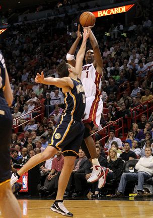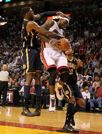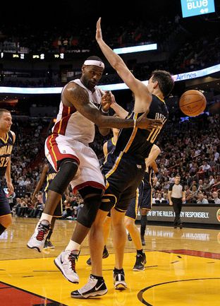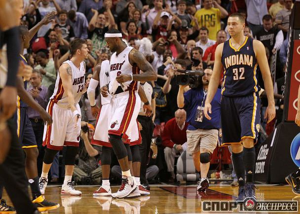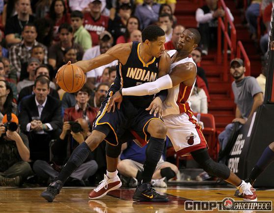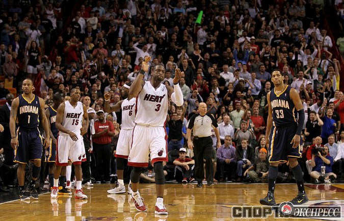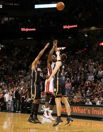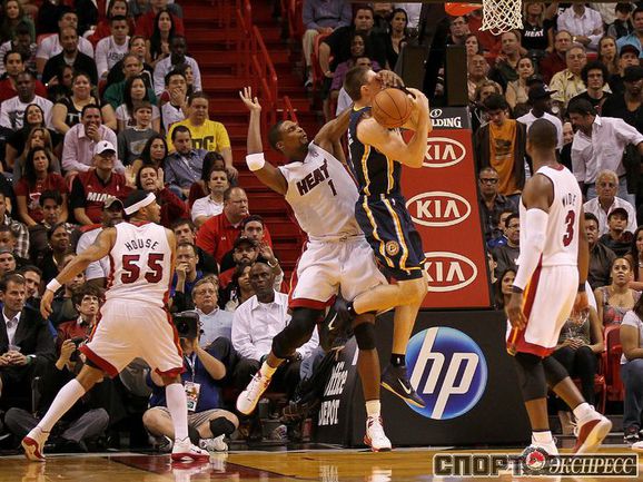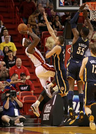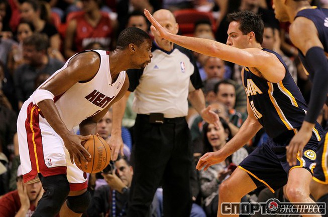 НБА. Регулярный чемпионат. "Майами" - "Индиана" - 117:112 (33:29, 30:37, 27:31, 27:15). М: Л. Джеймс (41 + 13 подборов + 8 передач), Бош (19 + 7 подборов), Уэйд (17 + 7 передач), Челмерс (16), М. Миллер (8), Джеймс Джонс (8). И: Хибберт (20 + 10 подборов), Грэйнджер (19), Хансброу (18), Д. Коллисон (15 + 8 передач), Макробертс (12), Дон. Джонс (11). Фото AFP
