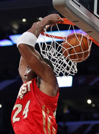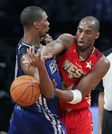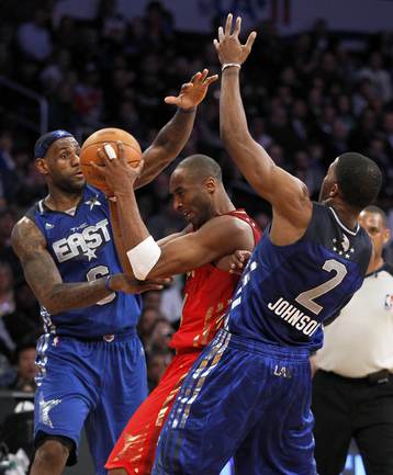 НБА. Лос-Анджелес. Звездный уик-энд. Матч звезд. "Запад" - "Восток" - 148:143 (37:27, 39:37, 41:36, 31:43). Самым ценным игроком Матча звезд НБА признан защитник "Лейкерс" Коби Брайант. Брайант получил этот титул уже в четвертый раз. До этого баскетболист признавался MVP Матча звезд в 2009, 2007 и 2002 годах. Отметим, что защитник "Лейкерс" также сделал в этой встрече 14 подборов и три результативные передачи. Фото REUTERS