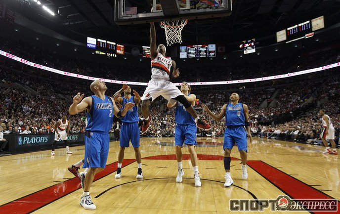 НБА. 1/8 финала. Западная конференция. Шестой матч. "Портленд" - "Даллас" - 96:103 (27:19, 16:33, 19:23, 34:28). П: Уоллес (32), Олдридж (24), Мэттьюс (19). Д: Новицки (33), Мэрион (16), Кидд (7 очков+6 подборов). Итоговый счет серии: 2-4. Фото REUTERS