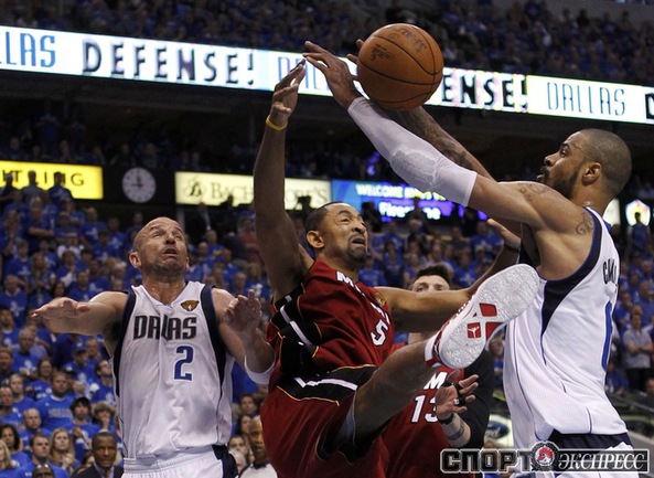 НБА. Плей-офф. Финал. Третий матч. "Даллас" - "Майами" - 86:88 (22:29, 20:18, 22:20, 22:21). Д: Новицки (34 + 11 подборов + 3 блок-шота + 3 потери), Терри (15), Мэрион (10), Кидд (9 + 6 подборов + 10 передач + 4 потери), Т. Чендлер (5 + 11 подборов). М: Уэйд (29 + 11 подборов + 3 передачи), Бош (18 + 3 подбора + 2 потери), Л. Джеймс (17 + 3 подбора + 9 передач + 2 перехвата + 4 потери), Челмерс (12). Счет в серии: 1-2. Фото REUTERS
