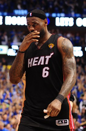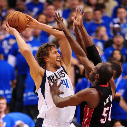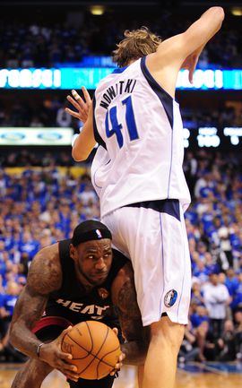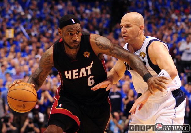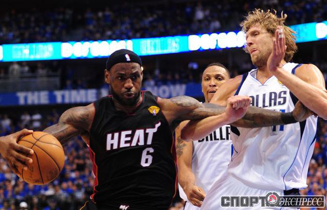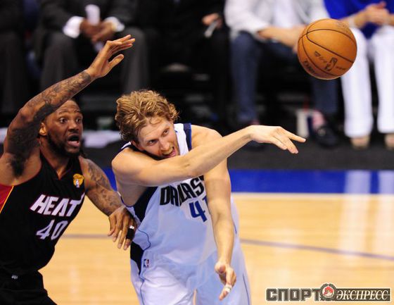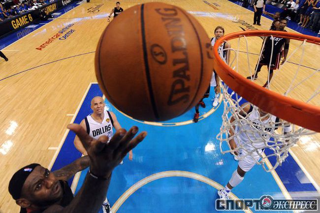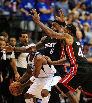 НБА. Плей-офф. Финал. Пятый матч. "Даллас" - "Майами" - 112:103 (30:31, 30:26, 24:22, 28:24). Д: Новицки (29), Терри (21), Жуан Бареа (17), Т. Чендлер (13 + 7 подборов), Кидд (13). М: Уэйд (23 + 8 передач), Бош (19 + 10 подборов), Л. Джеймс (17 + 10 подборов + 10 передач), Челмерс (15), Хаслэм (10). Счет в серии: 3-2. Фото AFP