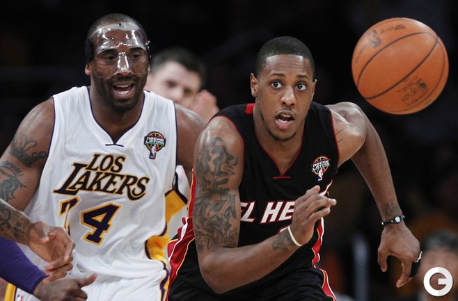 НБА. Регулярный чемпионат. "Лейкерс" - "Майами" - 93:83. Л: Брайант (33), Артест (17 + 7 подборов), Э. Байнум (16 + 13 подборов), П. Газоль (11 + 10 подборов). М: Л. Джеймс (25 + 13 подборов + 7 передач), Уэйд (16 + 5 потерь), Челмерс (15). "Торонто" - "Голден Стэйт" - 83:75. Т: Дерозан (25), Барбоза (18), Джеймс Джонсон (12 + 12 подборов), Ам. Джонсон (11 + 13 подборов), Эл Дэвис (2 + 12 подборов). Г: Д. Ли (22 + 12 подборов), Эллис (20 + 7 передач), Б. Раш (7 + 9 подборов). Фото REUTERS