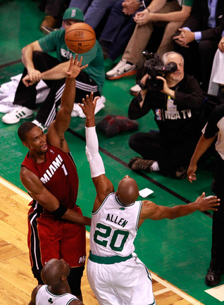 НБА. Плей-офф. 1/2 финала. Восточная конференция. Шестой матч. "Бостон" - "Майами" - 79:98 (16:26, 26:29, 19:19, 18:24). Б: Рондо (21 + 10 передач + 7 потерь), Басс (12 + 7 подборов), Гарнетт (12), Р. Аллен (10), Пирс (9). М: Л. Джеймс (45 + 15 подборов), Уэйд (17 + 8 подборов), Челмерс (9), Баттье (8), Хаслэм (6 + 9 подборов). Счет в серии: 3-3. Решающий седьмой матч серии пройдет в Майами в ночь с субботы на воскресенье по московскому времени. Напомним, ранее первым финалистом стал клуб "Оклахома-Сити". Фото AFP и REUTERS