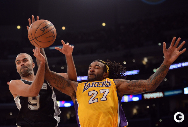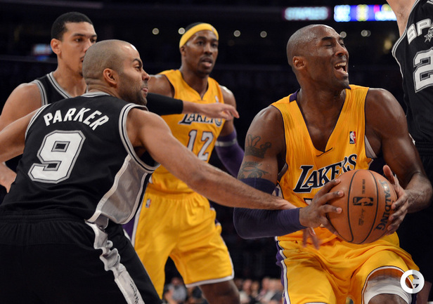 НБА. Регулярный чемпионат. "Лейкерс" - "Сан-Антонио" - 82:84. Л: Брайант (28 + 8 передач), Дуайт Ховард (13 + 15 подборов + 6 потерь), Уорлд Пис (12), П. Газоль (10 + 10 подборов), Джордан Хилл (8). С: Т. Паркер (19 + 7 передач), Данкан (18 + 9 подборов), Дэнни Грин (11), Сплиттер (9 + 9 подборов). "Бруклин" - "Кливленд" - 114:101. Б: Дерон Уильямс (26 + 10 передач), Джо Джонсон (25 + 6 передач + 5 подборов), Б. Лопес (23 + 7 подборов), Блатч (13 + 5 подборов), Хампфрис (12 + 6 подборов). К: Варежау (35 + 18 подборов), Ирвинг (34 + 8 передач), Томпсон (14). Фото AFP