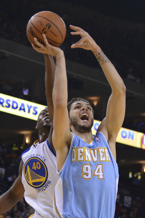 Российский центровой "Денвера" Тимофей Мозгов, в матче регулярного чемпионата НБА с "Голден Стэйт" (100:99) набравший 23 очка и сделавший 29 подборов, установил рекорд сезона. 29 подборов – лучший показатель "регулярки"-2013/14. Тимофей Мозгов стал первым баскетболистом "Денвера" с 2010 года (после Кармело Энтони), набравшим за матч более 20 очков и сделавшим более 20 подборов. "Даллас" – "Сан-Антонио" – 100:109. Д: Эллис (24), Новицки (19), Кальдерон (14), Мэрион (12). С: Миллз (26), Данкан (20 + 15 подборов), Леонард (16 + 16 подборов), Дэн. Грин (15), Сплиттер (12), Жинобили (10). Фото REUTERS