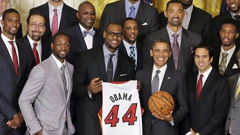 Нет, это не название очередного голливудского блокбастера. Речь идет о традиционном визите чемпионов НБА в Белый Дом. Второй год подряд баскетболисты "Хит" пожали руку президенту Бараку Обаме и покрасовались перед фото- и видеокамерами в шикарных вечерних костюмах. И, конечно, перекинулись с Обамой парой фраз, ведь он с молодости является поклонником баскетбола, и сам иногда не прочь покидать мяч.