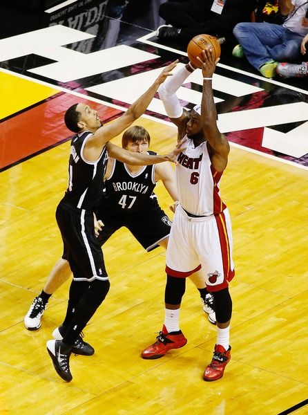 Но "Нетс" – и, что особенно приятно, российский форвард Андрей Кириленко тоже – были близки к нарушению всех традиций. Вторую четверть – лучшую в исполнении гостей – наш АК-47 отбегал без замен. Все складывалось для ньюйоркцев как нельзя лучше: своей суперподвижной защитой они заставили соперника сбиться на почти хаотичную пальбу из-за дуги (1 из 16 в первой половине!), а главную суперзвезду НБА – на роль подносчика снарядов для Уэйда. Во всяком случае, до большого перерыва Джеймс совершенно не производил впечатления человека, набирающего по 30 с лишним очков в среднем за матч плей-офф-2014.