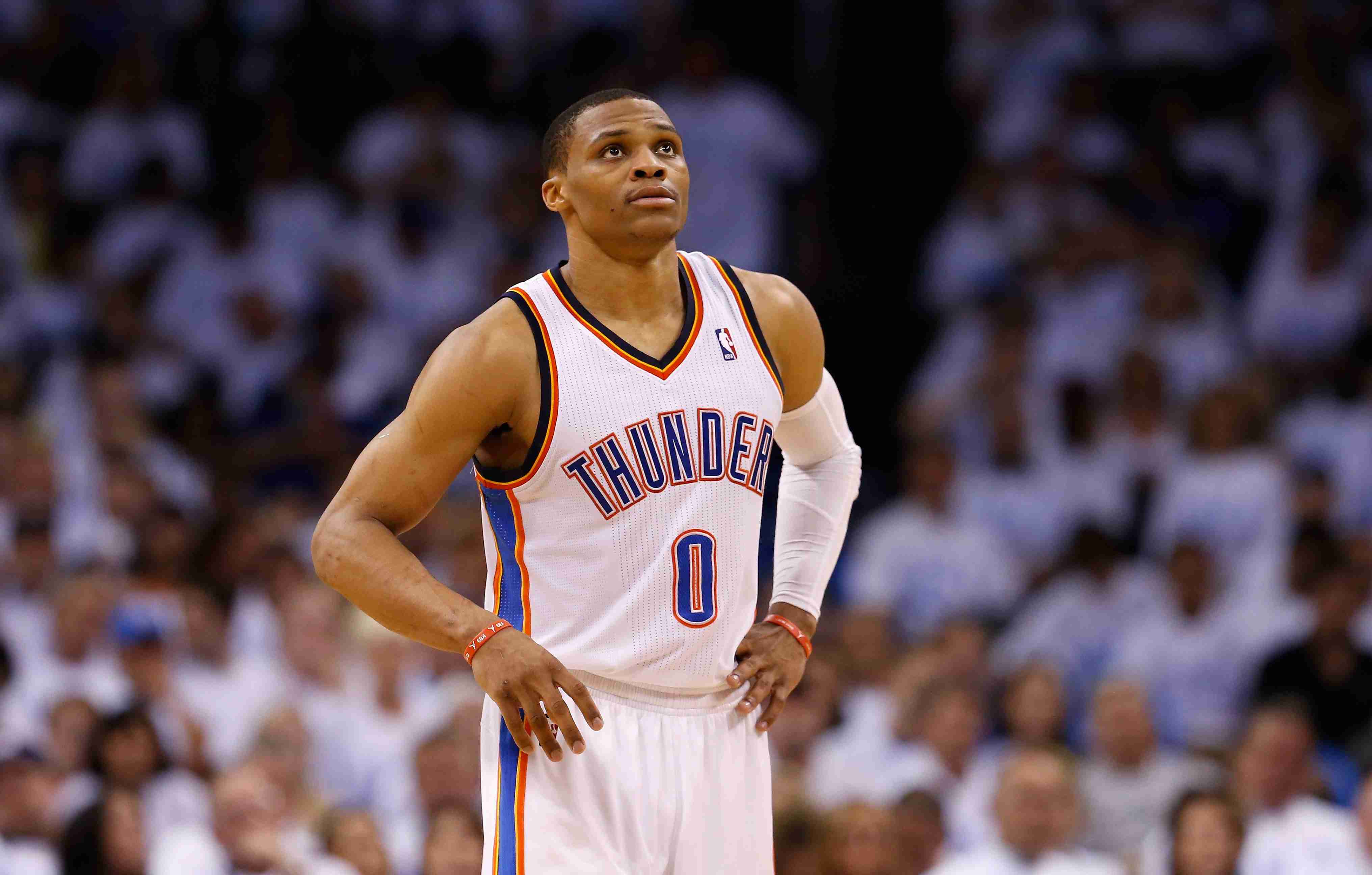 Разыгрывающий "Оклахомы", как это часто бывает, успевал выступить и главным героем, и главной бедой своей команды. Сперва Уэстбрук дважды потерял мяч, позволив "Сан-Антонио" добавить к своему преимуществу 4 очка, а затем сам совершил два удачных прохода, стрелой пронзив оборону гостей. Его пример вдохновил партнеров: две подряд атаки "Шпор" хакончились блок-шотами Ибаки (пускай последний и был исполнен после того, как мяч, выпущенный Жинобили, коснулся щита), а Дюрант набрал 4 очка подряд. После его второго попадания за 32 секунды до окончания основного времени зал взорвался: "Громовержцы" впервые в заключительной четверти вышли вперед.