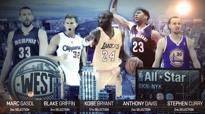 Старт: Стефен Карри ("Голден Стэйт"), Коби Брайант ("Лейкерс"), Блэйк Гриффин ("Клипперс"), Энтони Дэвис ("Нью-Орлеан"), Марк Газоль ("Мемфис"). Брайант пропустит матч из-за травмы