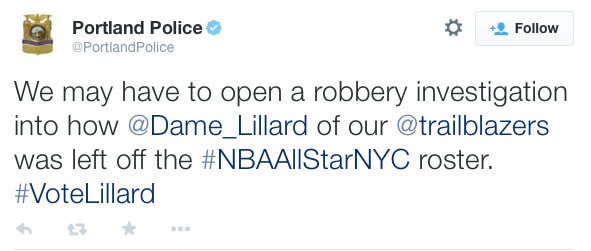 Отсутствие разыгрывающего "Портленда" Дэмиена Лилларда в составе "Запада" уж точно не объяснишь провальным матчем в Кливленде (лучший новичок НБА-2012/13 реализовал с игры лишь 4 попытки из 19, в то время как завоевавший это же звание годом раньше Кайри Ирвинг отгрузил "Портленду" аж 55 очков). Эта игра состоялась в среду, когда голосование тренеров уже завершилось. Но вообще, конечно, очень странно, когда за бортом Матча звезд остается баскетболист третьей команды конференции, чьи показатели в среднем за игру - 21,8 очка (12-е место в лиге), 6,2 передачи и 4,6 подбора! Этот вопрос заинтересовал даже полицию Портленда. В своем официальном твиттере представители органов пригрозили завести дело по статье "ограбление" и найти того, кто украл у их любимого разыгрывающего путевку на Матч звезд.
