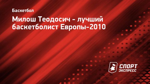 Лучшим игроком Европы 2010 года признан 23-летний разыгрывающий "Олимпиакоса" и сборной Сербии Милош Теодосич. По сумме итогов голосования болельщиков и экспертного бюро FIBA-Europe он лишь на две тысячных балла (0,169 против 0,167) опередил двукратного обладателя этого титула Поу Газоля, становившегося MVP по итогам 2008 и 2009 годов. Кстати, испанец и на этот раз был лучшим по мнению специалистов (203 голоса против 195), зато более чем вдвое уступил сербу по результатам опроса на сайте европейской федерации (соответственно 6213 и 13 160 голосов). Третье место в голосовании занял немец Дирк Новицки, за ним идут Линас Клейза (Литва), Хуан Карлос Наварро (Испания) и Хидайет Туркоглу (Турция). Лучший из россиян - центровой клуба НБА "Нью-Йорк Никс" Тимофей Мозгов - занял 14-е место, сообщает официальный сайт FIBA-Europe.