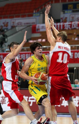 Баскетбол. Хайнин. Кубок Станковича. 1-й тур. Австралия - Россия - 97:99 ОТ (19:27, 25:19, 15:25, 29:17, 9:11). На этом турнире Россию представляет студенческая сборная, завершающая подготовку к Универсиаде в Китае. Ангола - Китай - 67-64. Фото AFP