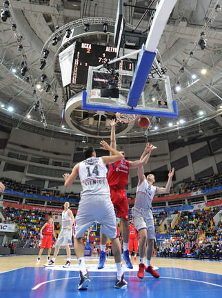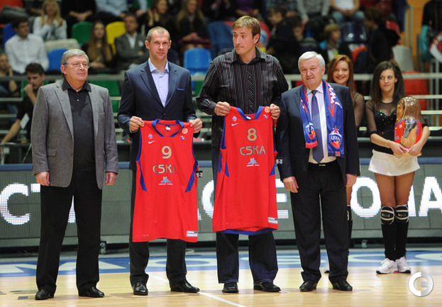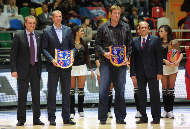 Баскетбол. Евролига. Мужчины. Первый групповой этап. 1-й тур. Группа D. ЦСКА (Россия) – "Летувос Ритас" (Литва) – 75:73 (20:23, 26:14, 8:15, 21:21). В большом перерыве состоялись проводы из баскетбола армейцев Рамунаса Шишкаускаса и Матьяжа Смодиша. Фото - Федор УСПЕНСКИЙ, "СЭ"
