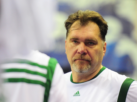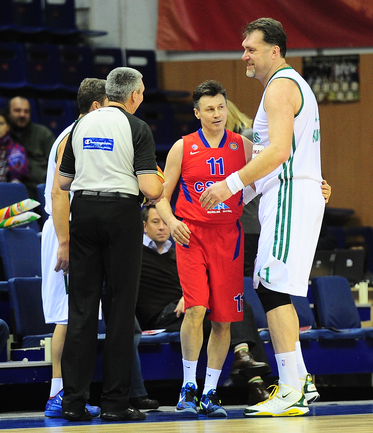 Баскетбол. Матч легенд. ЦСКА (Россия) - "Жальгирис" (Литва) - 28:28 (16:15, 12:13). Перед игрой группового этапа Единой лиги ВТБ ЦСКА - "Жальгирис" в Москве состоялся матч ветеранов двух команд, который завершился вничью - 28:28. Напомним, что первая такая встреча прошла в Каунасе в октябре прошлого года. Тогда сильнее оказались хозяева площадки (46:45). Фото - Антон СЕРГИЕНКО, "СЭ"