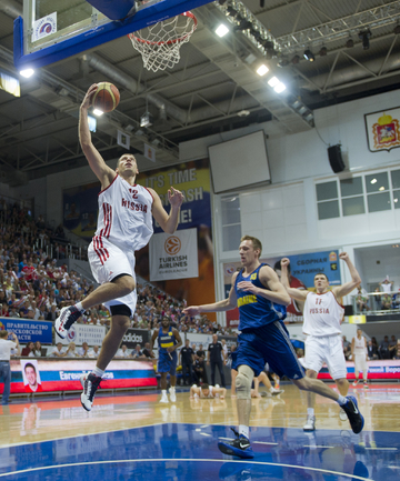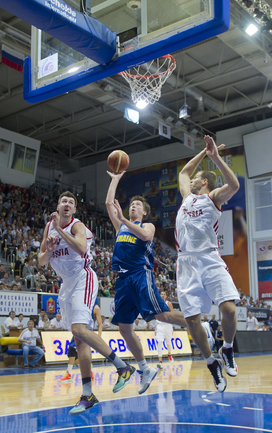 Баскетбол. Химки. Товарищеский матч. РОССИЯ – Украина – 86:70 (13:24, 23:14, 26:14, 24:18). Р: Швед (23), Моня (17), Фридзон (17). Сборная России в заключительном матче в рамках подготовки к стартующему 4 сентября Евробаскету-2013 обыграла Украину со счетом 86:70. Фото - Антон СЕРГИЕНКО, "СЭ"