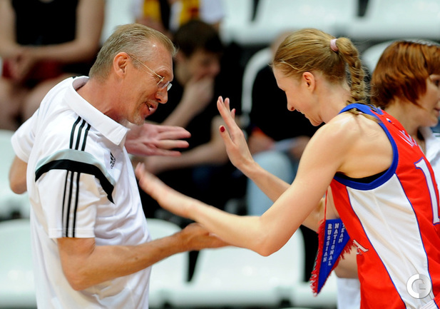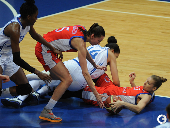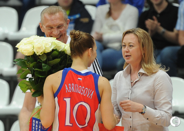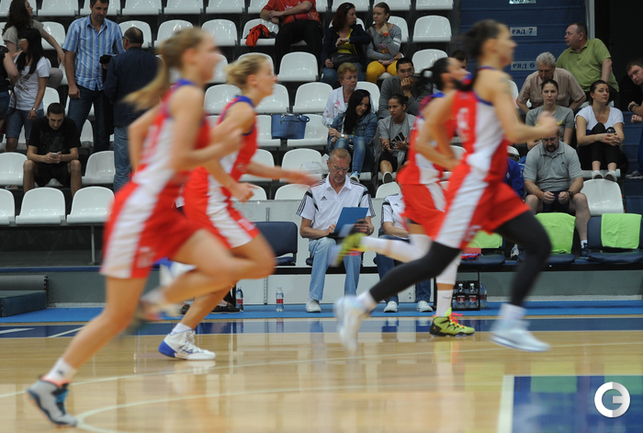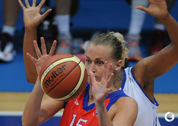 Москва. Товарищеский матч. Россия – Великобритания – 75:48 (18:10, 24:11, 14:15, 19:12). В первом товарищеском матче в рамках подготовки к квалификационному турниру Евробаскета-2015 сборная России дома обыграла команду Великобритании - 75:48. Самой результативной в составе нашей команды стала Анна Петракова, набравшая 13 очков. Это была первая игра сборной под руководством Анатолия Мышкина. Ранее он руководил женской сборной России в 93-м и 97-м годах. Фото - Федор Успенский, "СЭ"