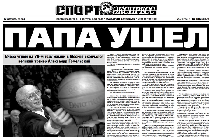 Итак, Александр Гомельский - в публикациях "СЭ" разных лет.