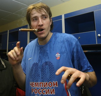 Тут чемпиона Европы-2007 снова прервали. Рядом с одноклубником присел Андрей Воронцевич, для которого нынешний российский титул - третий подряд. У молодого форварда в зубах тоже была сигара: "Вить, давай с тобой закурим! Давай, сегодня же можно! Не хочешь? Эх, ну что же ты… Эй, кто еще будет курить?" |