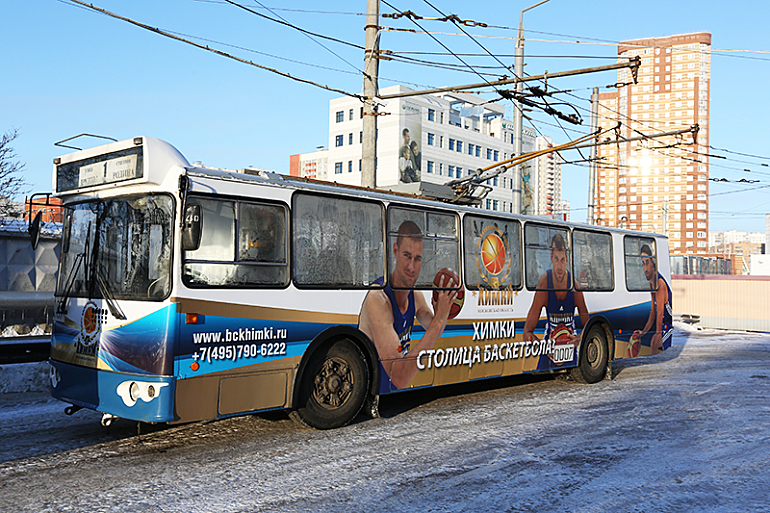 В Химках состоялась официальная презентация троллейбусов с дизайном баскетбольного клуба "Химки", которые будут работать в городе на маршрутах №202, №203 и №1.