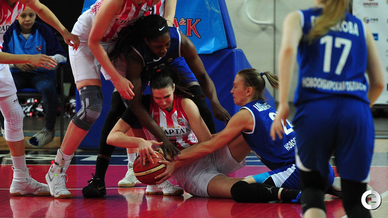 "Спарта&К" (Видное) – "Динамо" (Новосибирская область) – 76:65. В матче плей-офф чемпионата России "Спарта&К" и новосибирское "Динамо" продолжают борьбу за седьмое место. Счет в этой серии - 1:1. Впереди у команд третий решающий матч в Новосибирске.