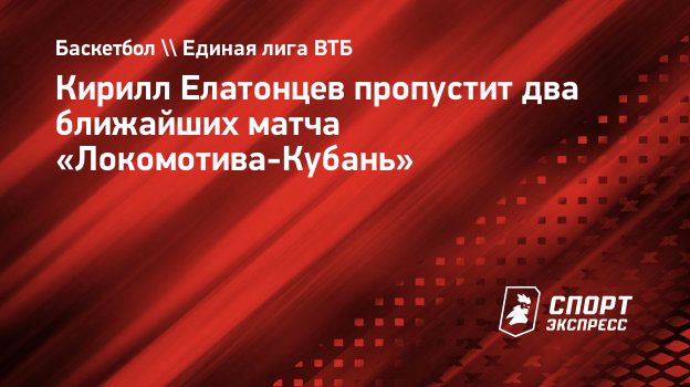 Как сообщает «СЭ» источник из «Локомотива-Кубань», в связи с осложнениями после перенесенной инфекции Кирилл Елатонцев пропустит два ближайших матча своей команды.