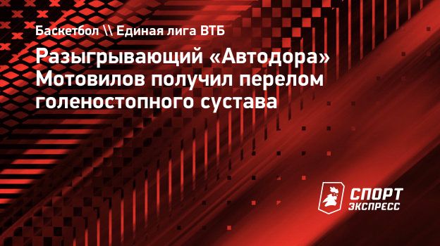 Разыгрывающий «Автодора» Григорий Мотовилов получил перелом голеностопного сустава, сообщает пресс-служба клуба.