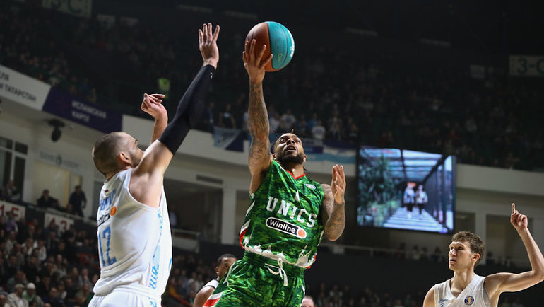 Передняя линия: Девон Акун-Перселл (УНИКС), Дуэйн Бэйкон («Зенит»), Керем Кантер («Автодор»), Амат Мбай (ЦСКА), Джален Рейнольдс (УНИКС).