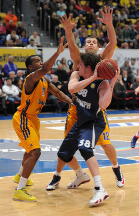 Баскетбол. Единая лига ВТБ. Групповой турнир. Группа B. "Химки" – "Триумф" (Люберцы) – 84:72 (23:19, 17:18, 21:21, 23:14). Х: Огастин (19 + 13 подборов), Моня (17), Копонен (17). Т: Хиггинс (24), Валиев (14), Ракович (13). Фото - Никита УСПЕНСКИЙ, "СЭ"