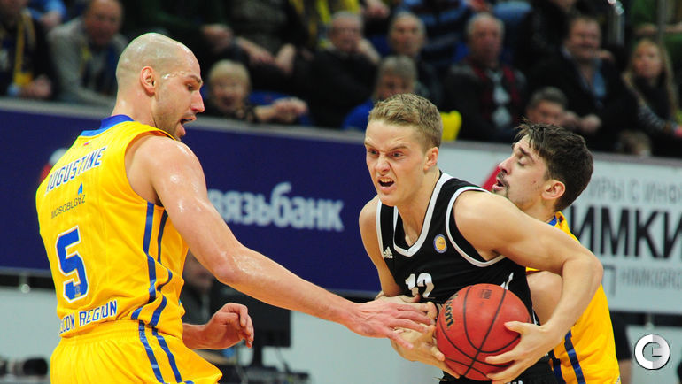 В матче регулярного чемпионата Единой лиги ВТБ "Химки" на своей площадке обыграли ВЭФ – 104:93. Самым результативным игроком встречи стал защитник гостей Франсиско Крус, набравший 35 очков. У подмосковного клуба по этому показателю с 25 очками лучшим стал Петтери Копонен. Еще 17 баллов добавил Алексей Швед. "Химки" продлили свою беспроигрышную домашнюю серию в регулярке до семи игр. Фото Никита УСПЕНСКИЙ, "СЭ"